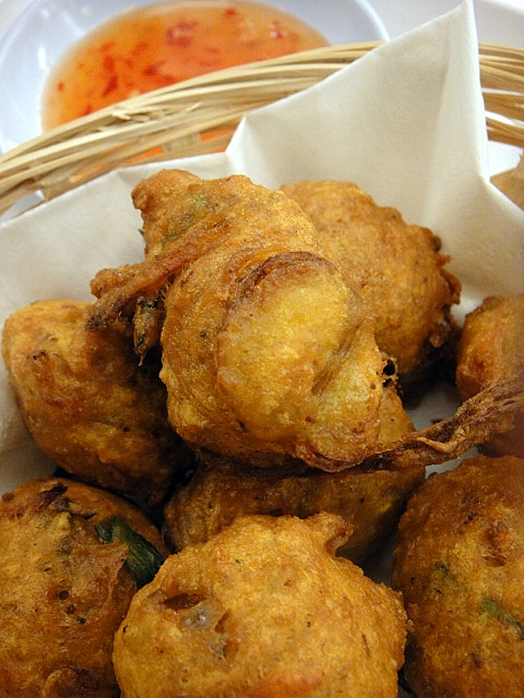 Freshly fried cucur ikan bilis, a little less common than cucur udang.